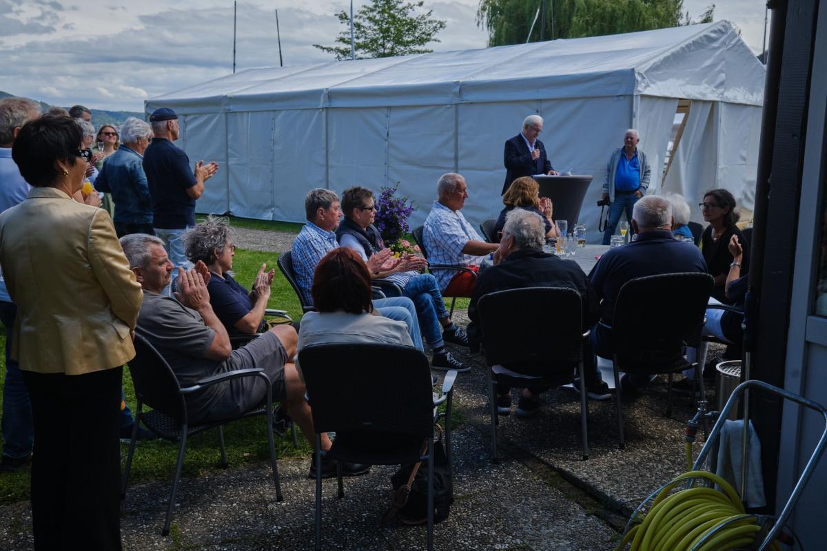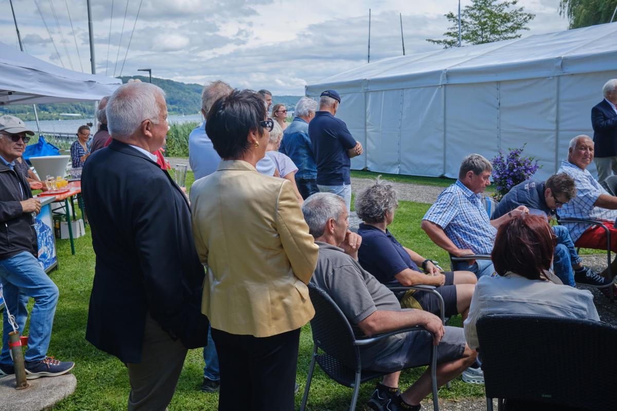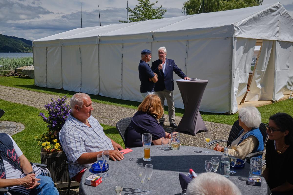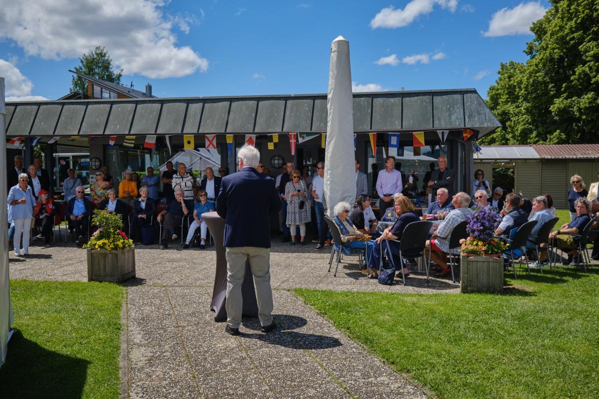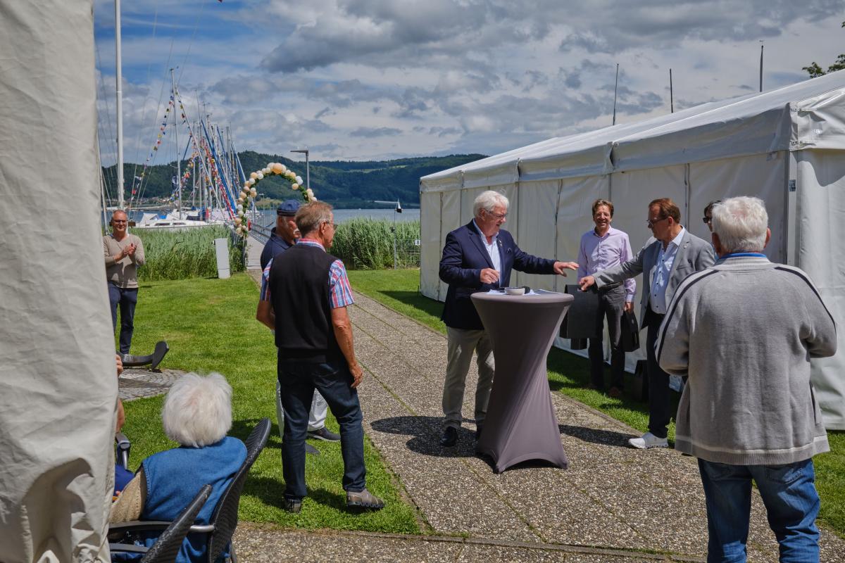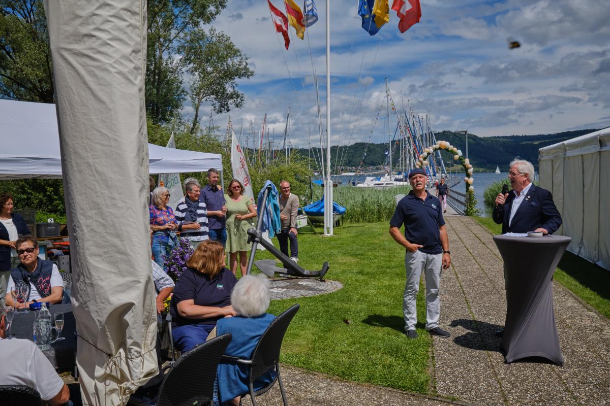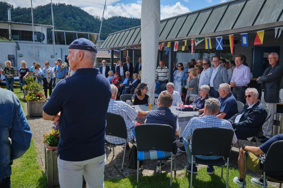 Am vergangenen Wochenende versammelten sich die Mitglieder des Segelclubs Bodman zur feierlichen Einweihung ihres in Eigenregie sanierten Stegs. Kuno Storz, der Vorsitzende des SCBo, eröffnete die Veranstaltung mit einer herzlichen Begrüßung der Gäste. Besonders erfreut zeigte er sich über die Anwesenheit der Präsidentin des Segelverbandes Baden-Württemberg, Frau Kromer Schall, die er herzlich willkommen hieß.