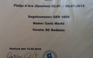Carla Merkt hat durch ihre guten Regattaergebnisse die Teilnahmeberechtigung an der "Jugendeuropameisterschaft der Europe-Klasse 2015" erhalten. Diese wird in Spanien von 02.Juli bis 09.Juli 2015 ausgetragen werden. Wenn Carla teilnimmt, werden wir ihr alle Daumen [...]